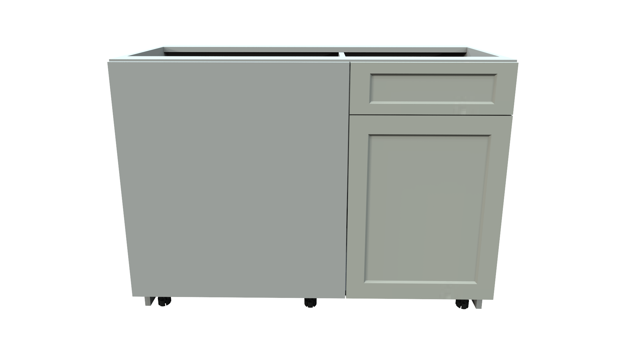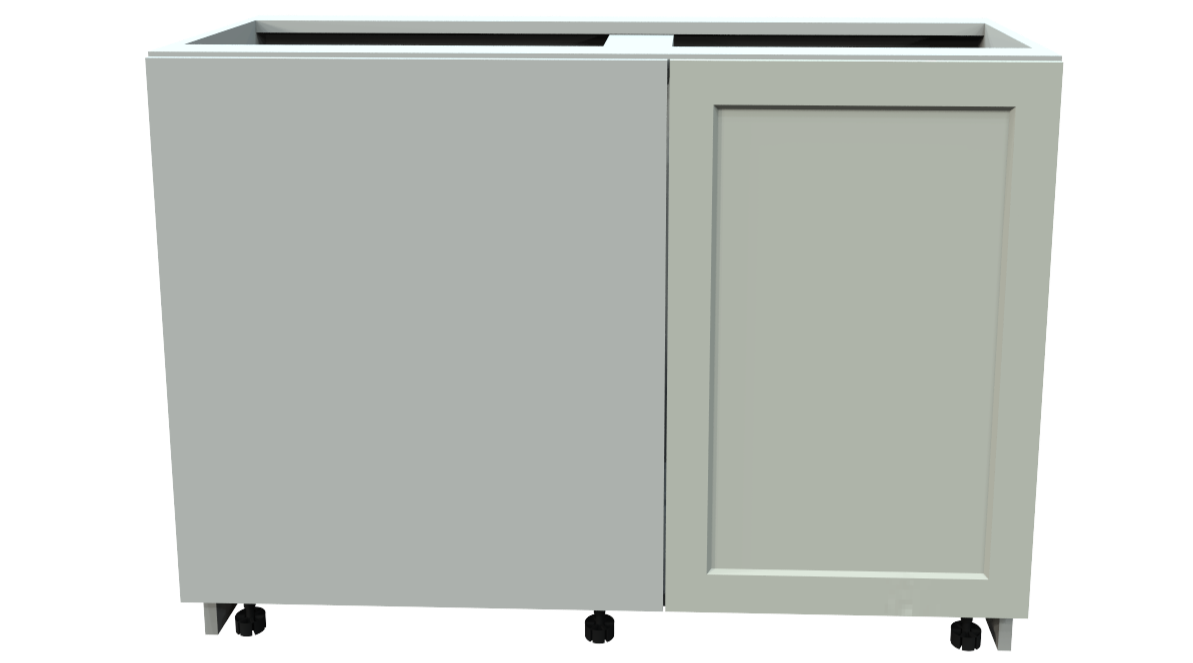 A functional corner cabinet designed to maximize storage and accessibility in corner spaces. Its versatile layout can be customized to create offset corners, providing flexibility for unique kitchen layouts.