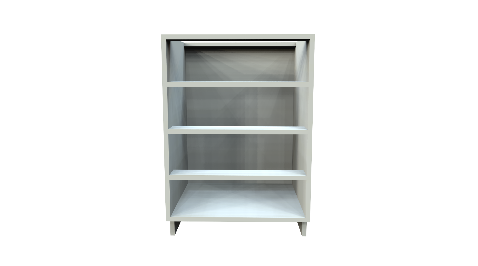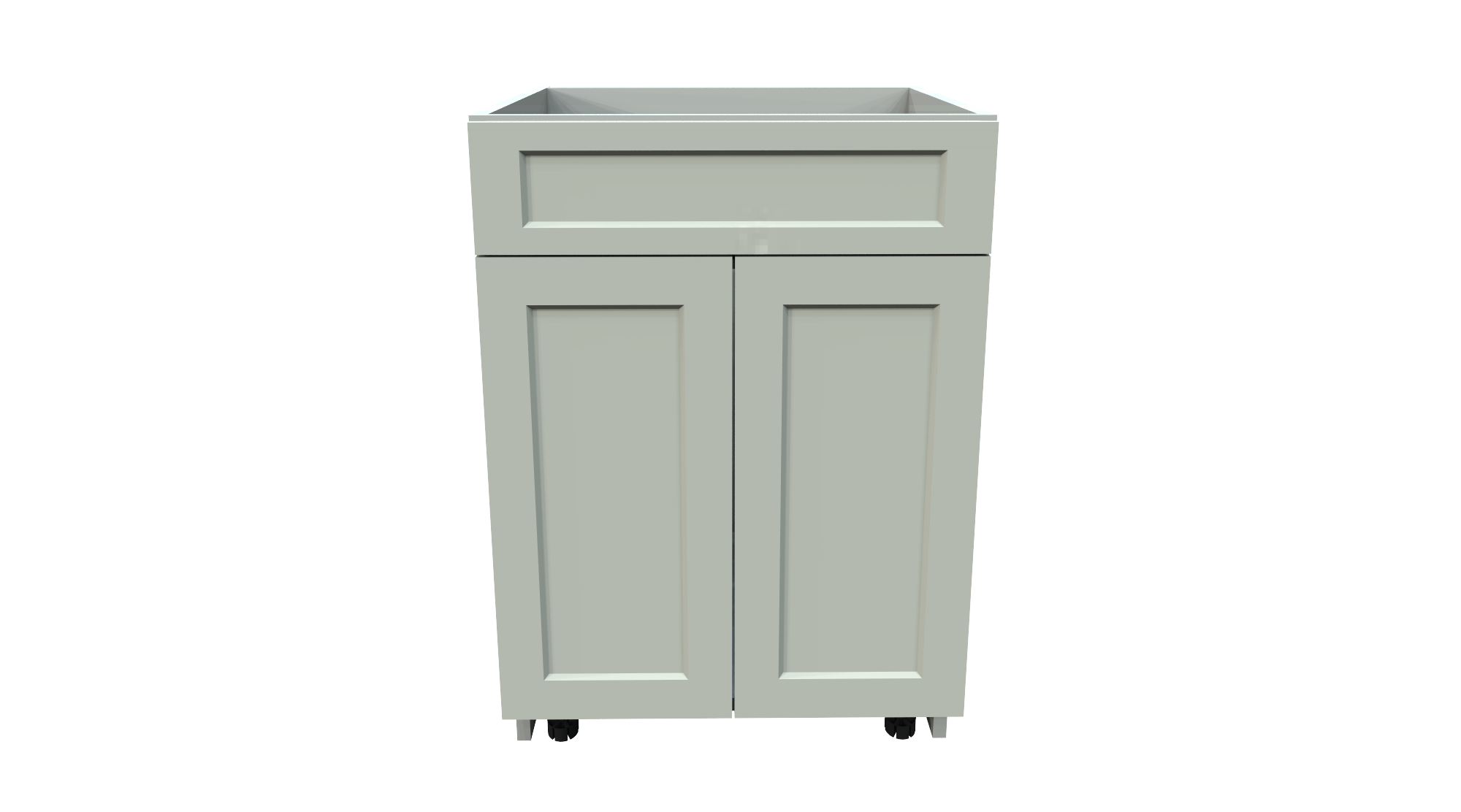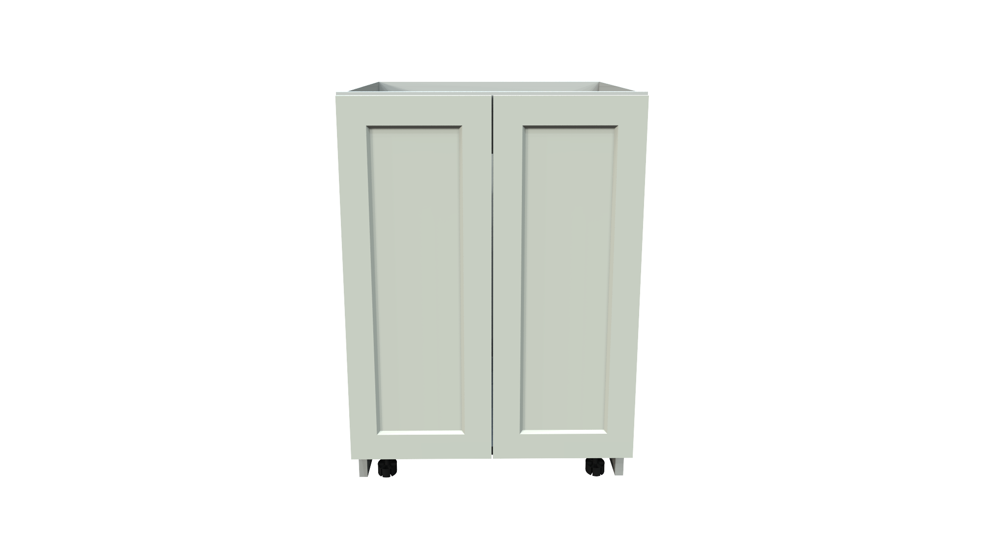 Our base cabinets are built to a standard depth of 24" and height of 34.5", including a 4" toe kick. The cabinet box is constructed from 3/4" white melamine with 1 mm edge banding for clean, durable edges, and the bottom edge of each side panel is edge banded for added sealing and durability. White melamine is standard but can be substituted with any of our Cabinet Box Finishes. Interior cabinet depth is 22.5". Cabinets are fully customizable in depth, width (as outlined in each product description), and height, unless otherwise noted.