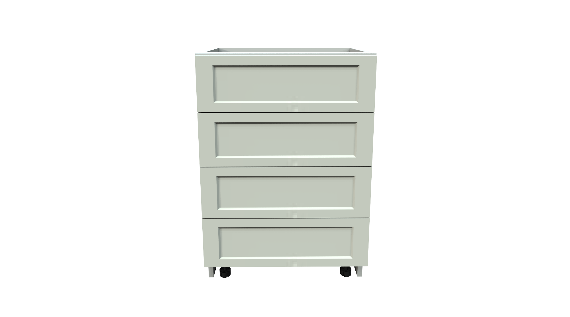 A sleek and efficient cabinet featuring four equal-height drawers for organized and accessible storage. Perfect for kitchens that need versatile space for utensils, tools, and smaller items.