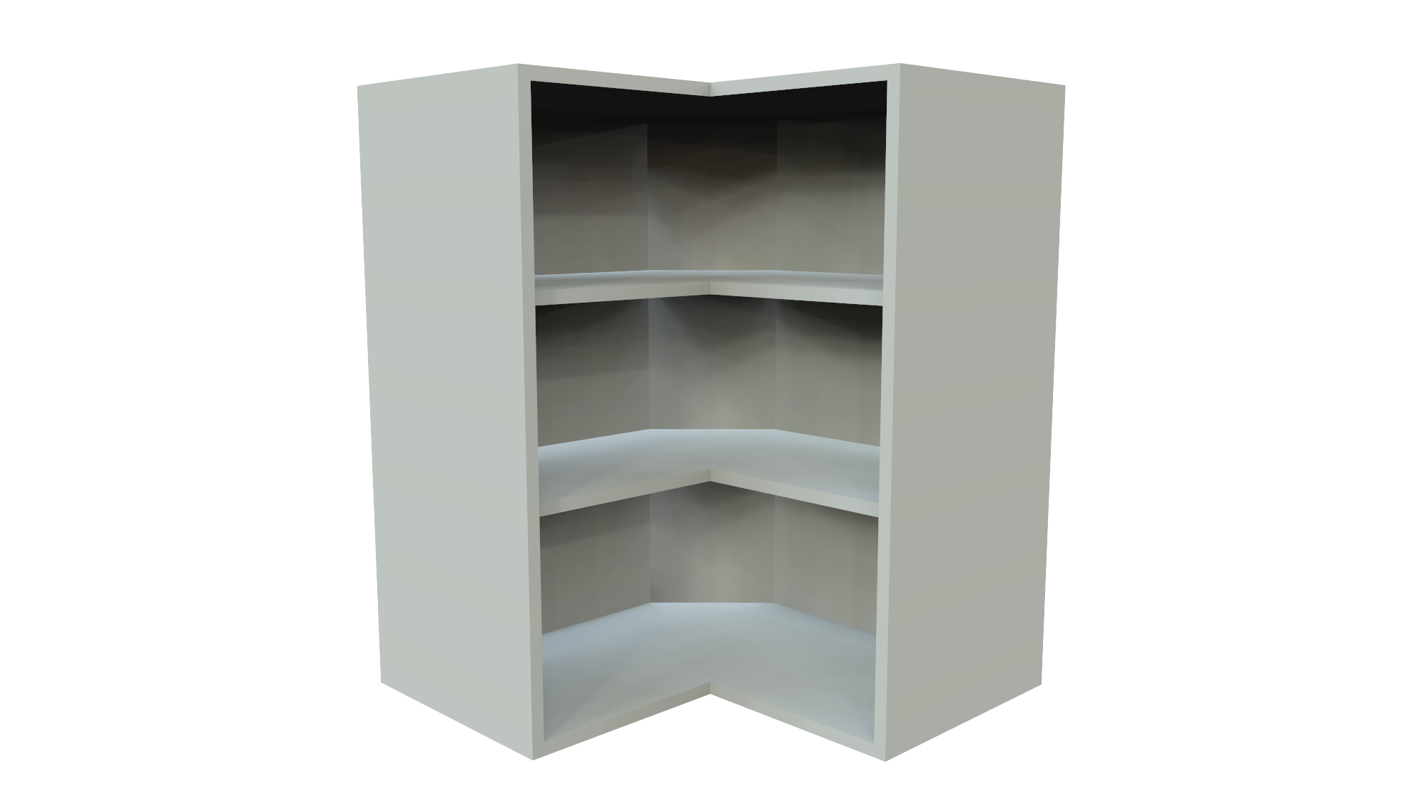A space-efficient corner cabinet designed to maximize storage and accessibility in corner wall applications while maintaining a smooth, continuous look in the layout.
