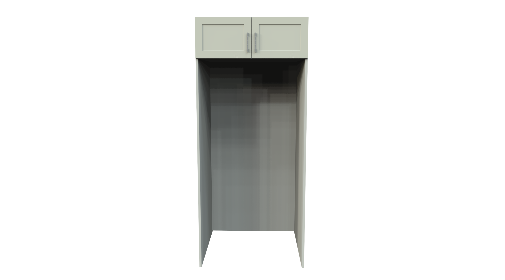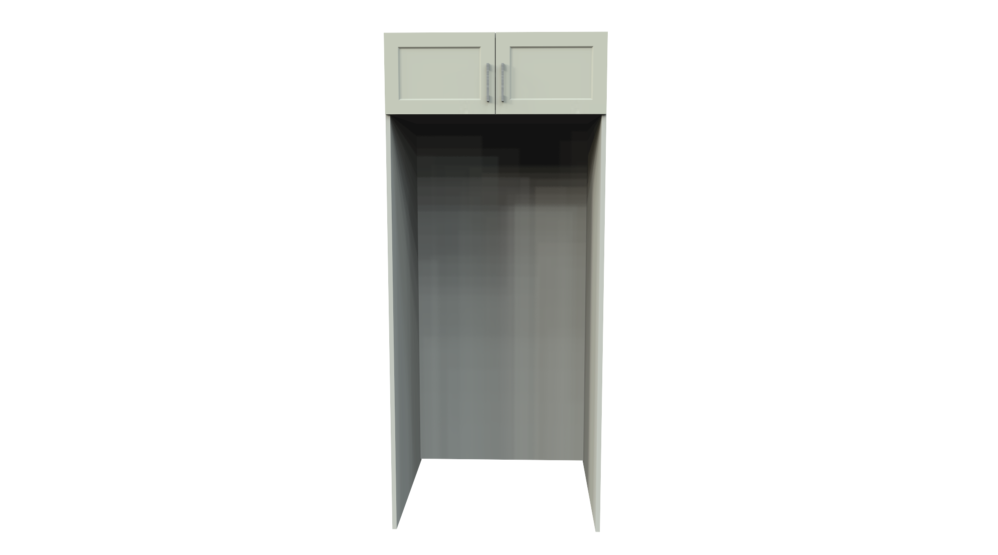 A full-height cabinet designed to fully enclose the refrigerator, providing a seamless built-in appearance with additional upper storage.