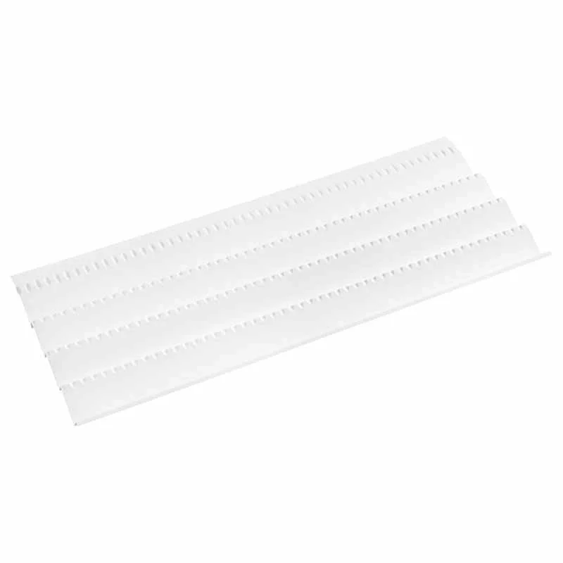 A convenient spice drawer insert designed to keep bottles neatly organized and easy to access. The tiered layout provides clear visibility of all labels, while the durable white polymer construction ensures long-lasting performance. Trimmable edges allow for a custom fit in various drawer sizes.